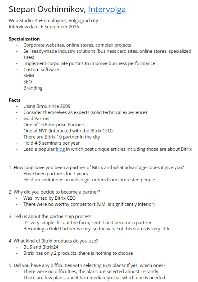 Участвовал в интервью с бизнес-партнёрами для сбора фидбека.