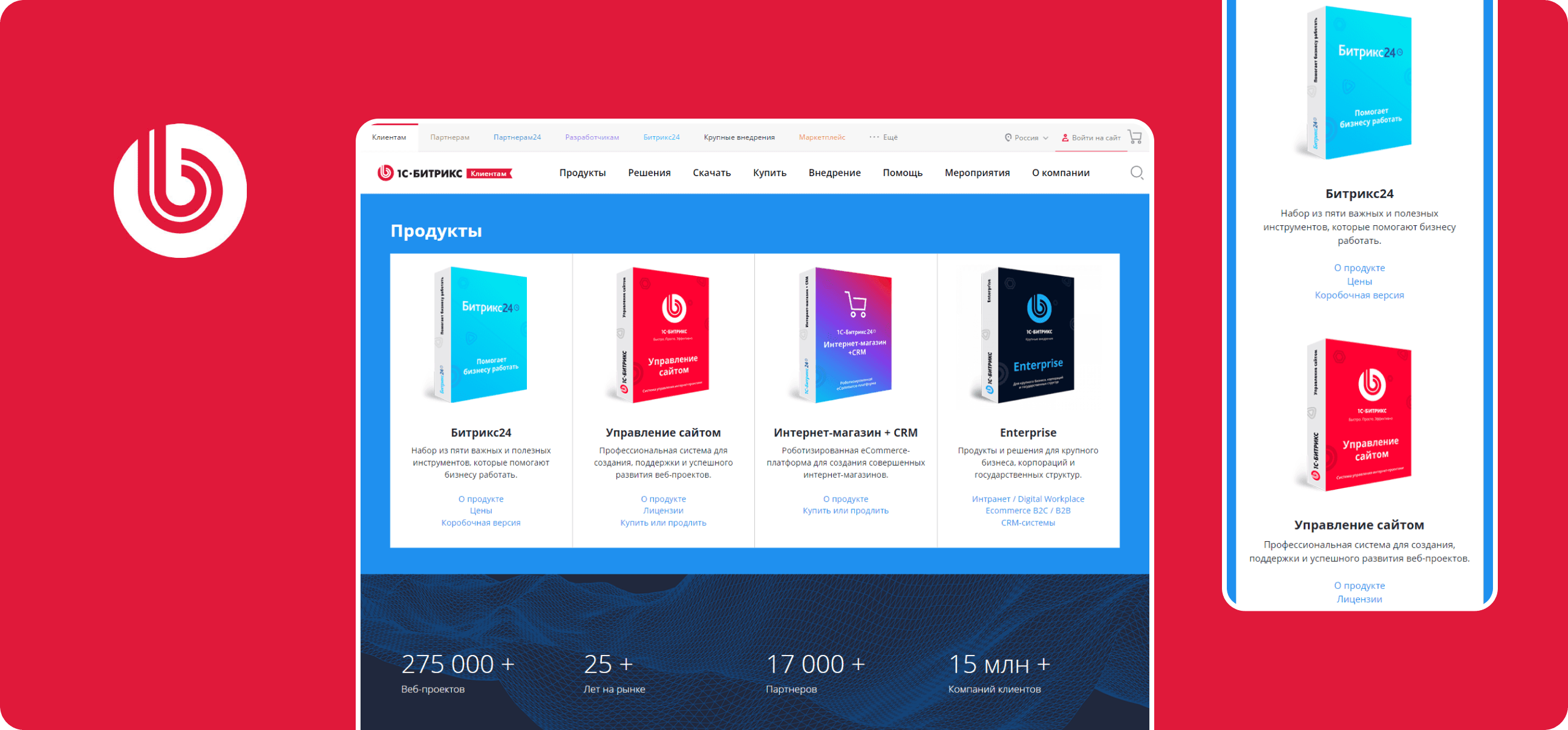 Продукт успешно получил новый дизайн, после чего стал ещё более успешным: продукт развивается, и количество партнёров и проектов в разработке стремительно растёт. На 2021 год "1С-Битрикс: Управление сайтом" являлся самой популярной коммерческой CMS по реальным установкам на сайтах согласно рейтингу iTrack.