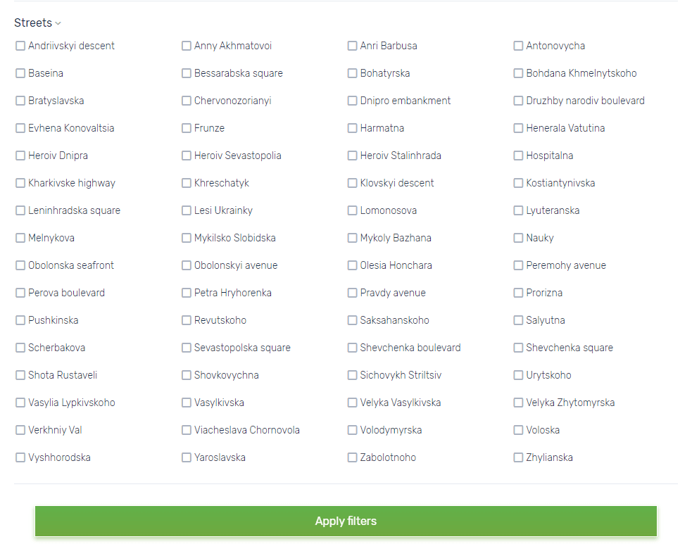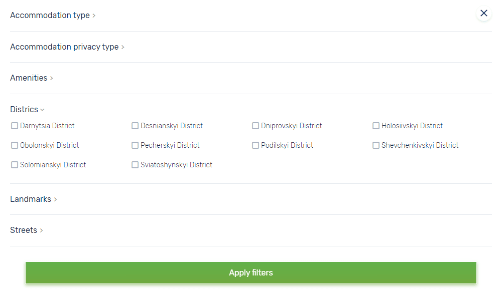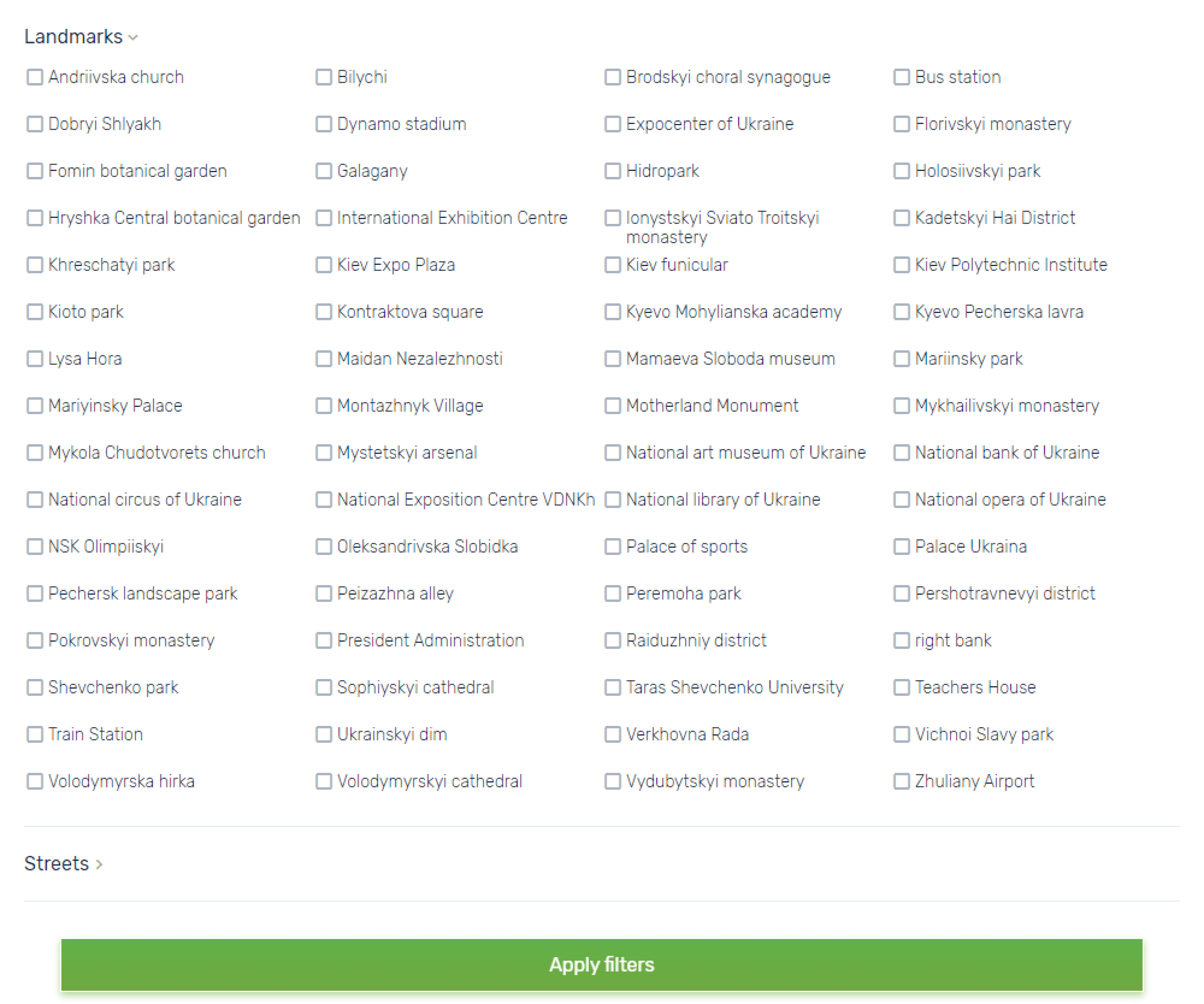 Использование фильтров при поиске апартаментов было не очень удобным — информация была плохо сгруппирована, часть важных фильтров отсутствовала, но при этом имелась у конкурентов.