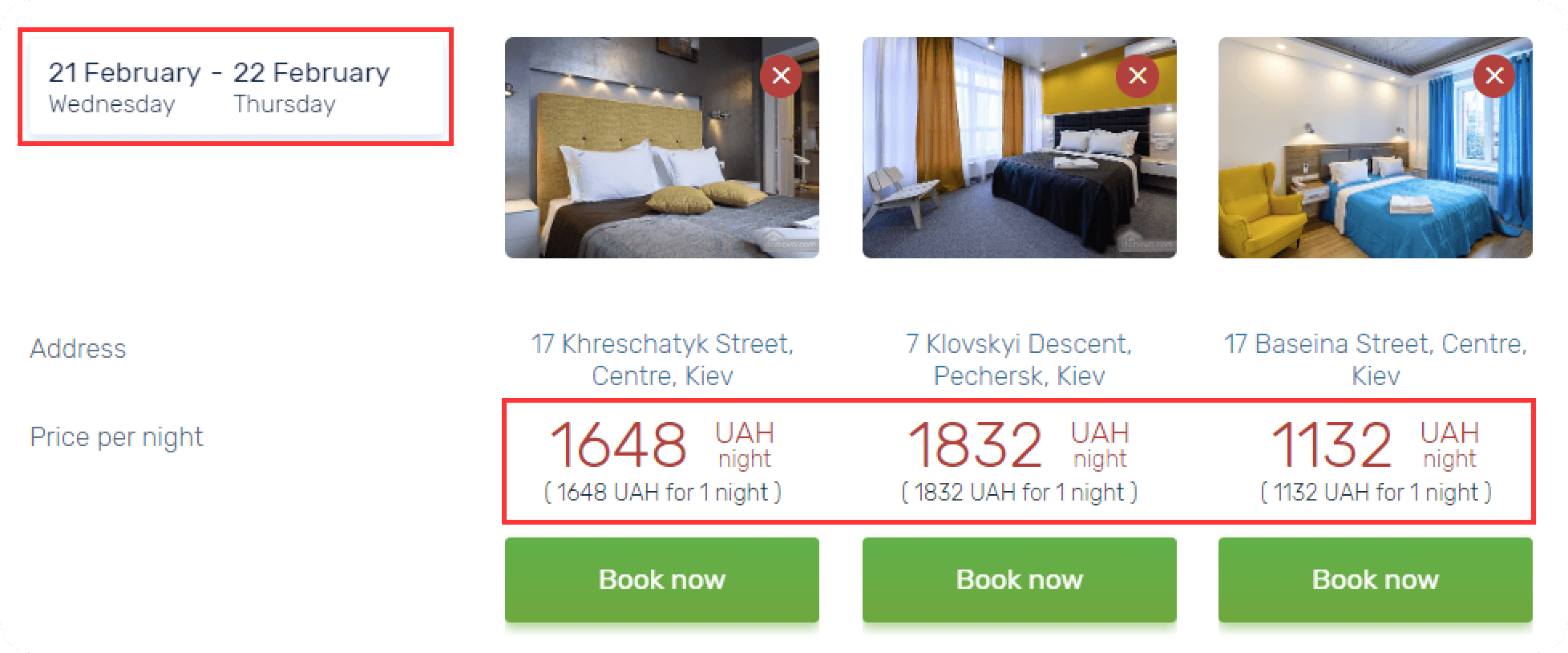 Отсутствие выбора дат въезда и выезда, и, как следствие, невозможность сравнения по цене за ночь, а это основной фактор для огромного количества пользователей.