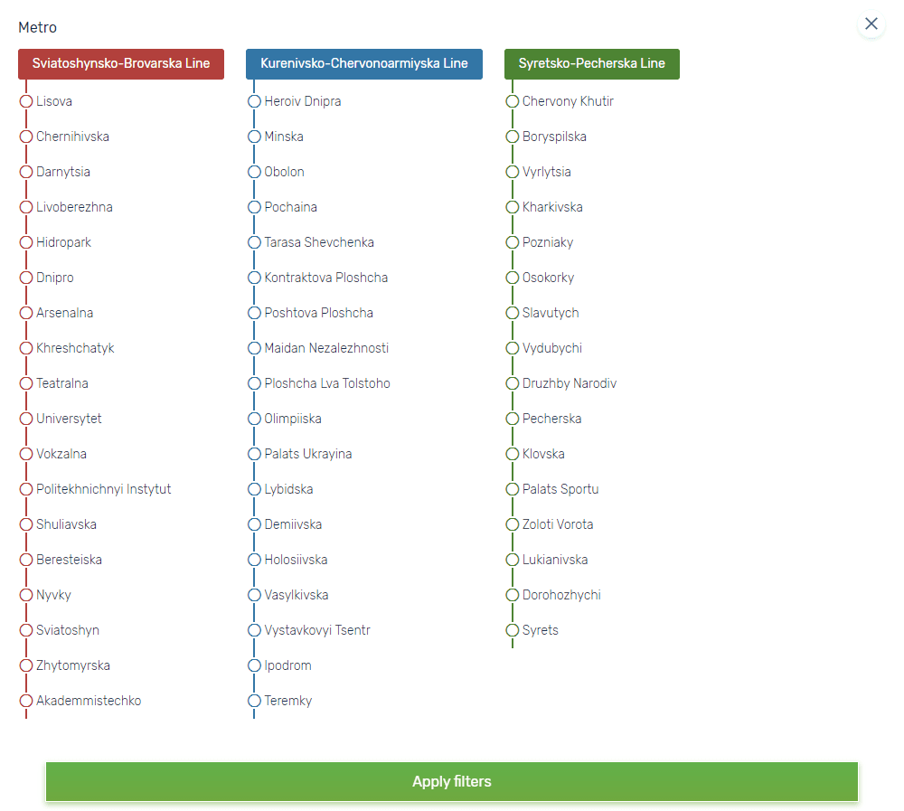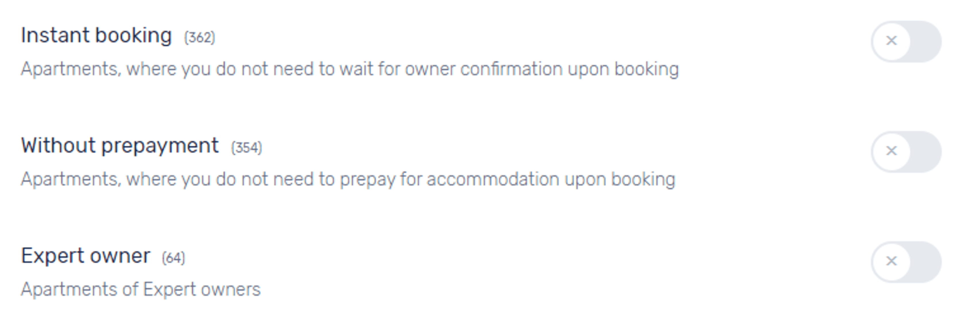 Рядом с каждым фильтром указал, сколько таких квартир доступно для бронирования.