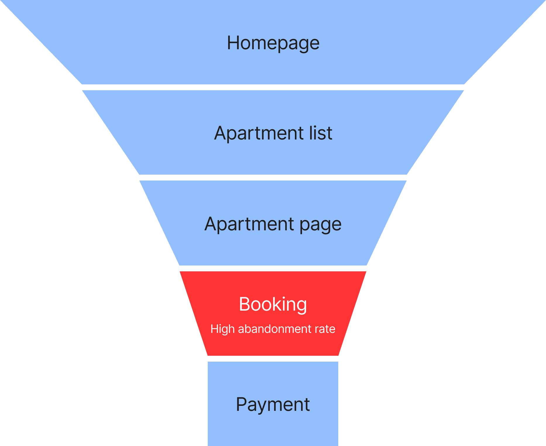 Несмотря на то, что процесс бронирования был уже хорошо налажен, пользовали часто не заканчивали его и покидали сайт. У меня не было точной информации о причинах этого, оставалось лишь предполагать.