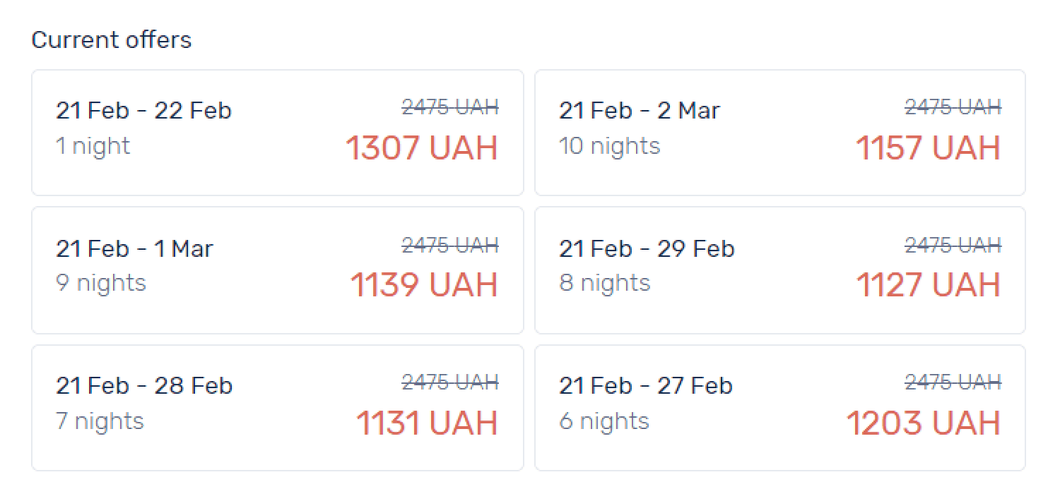 Также указал процент бронирования на соседние даты — это позволит пользователям легко выбирать ближайшие дни в том случае, если не удаётся выбрать подходящее жильё на изначально указанные даты.