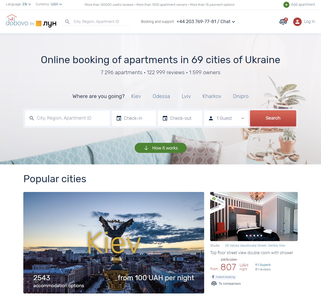 Продукт успешно работает и развивается. В конце 2019 года Добово объявили о начале сотрудничества с ЛУН — крупнейшим игроком на рынке поиска квартир. Благодаря этому, партнерство вывело рынок краткосрочной аренды на новый уровень и помогает украинцам и гостям иностранцам чаще и комфортнее путешествовать внутри страны.